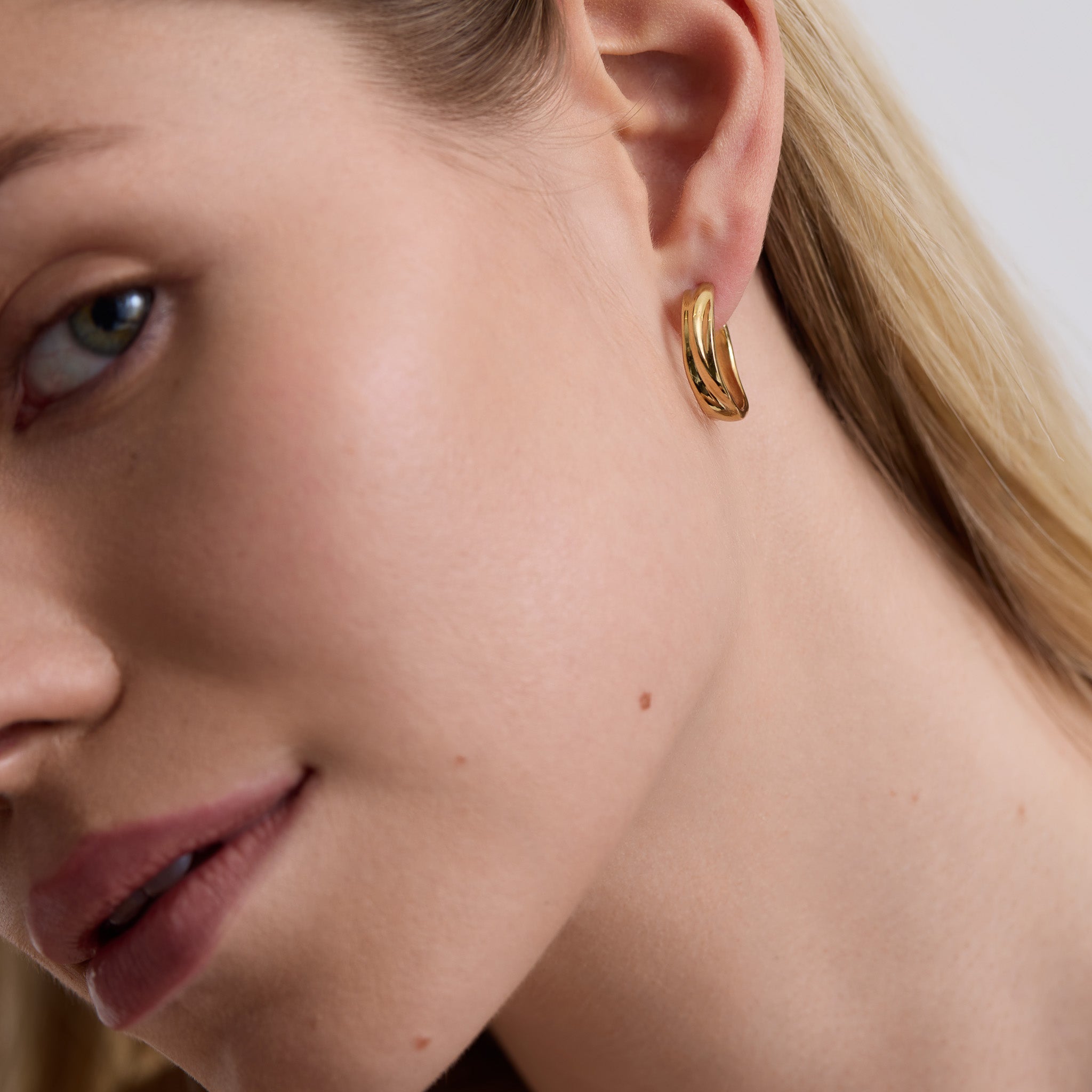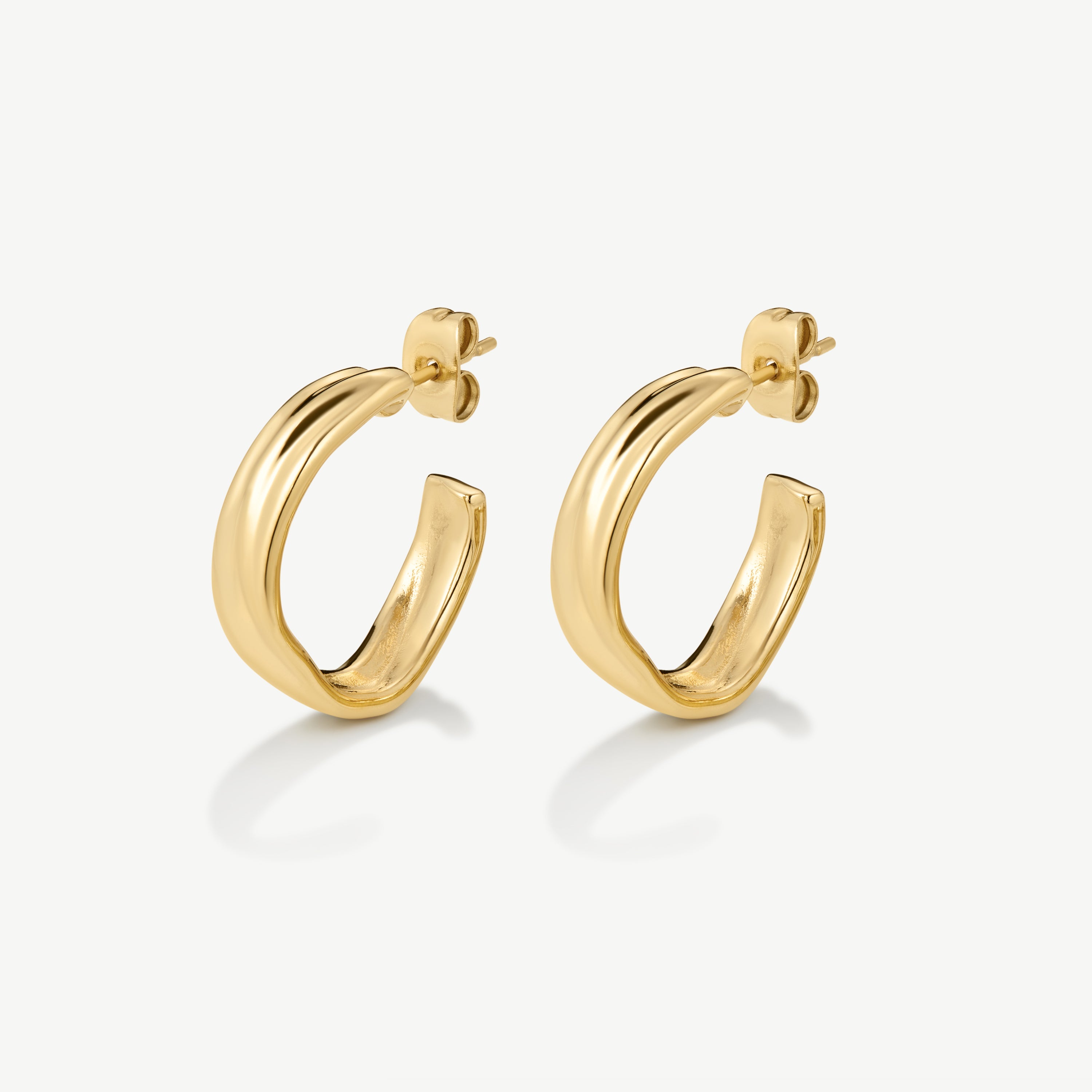 Details: Fluid gold, refined size. Everyday hoops with sculptural edge.