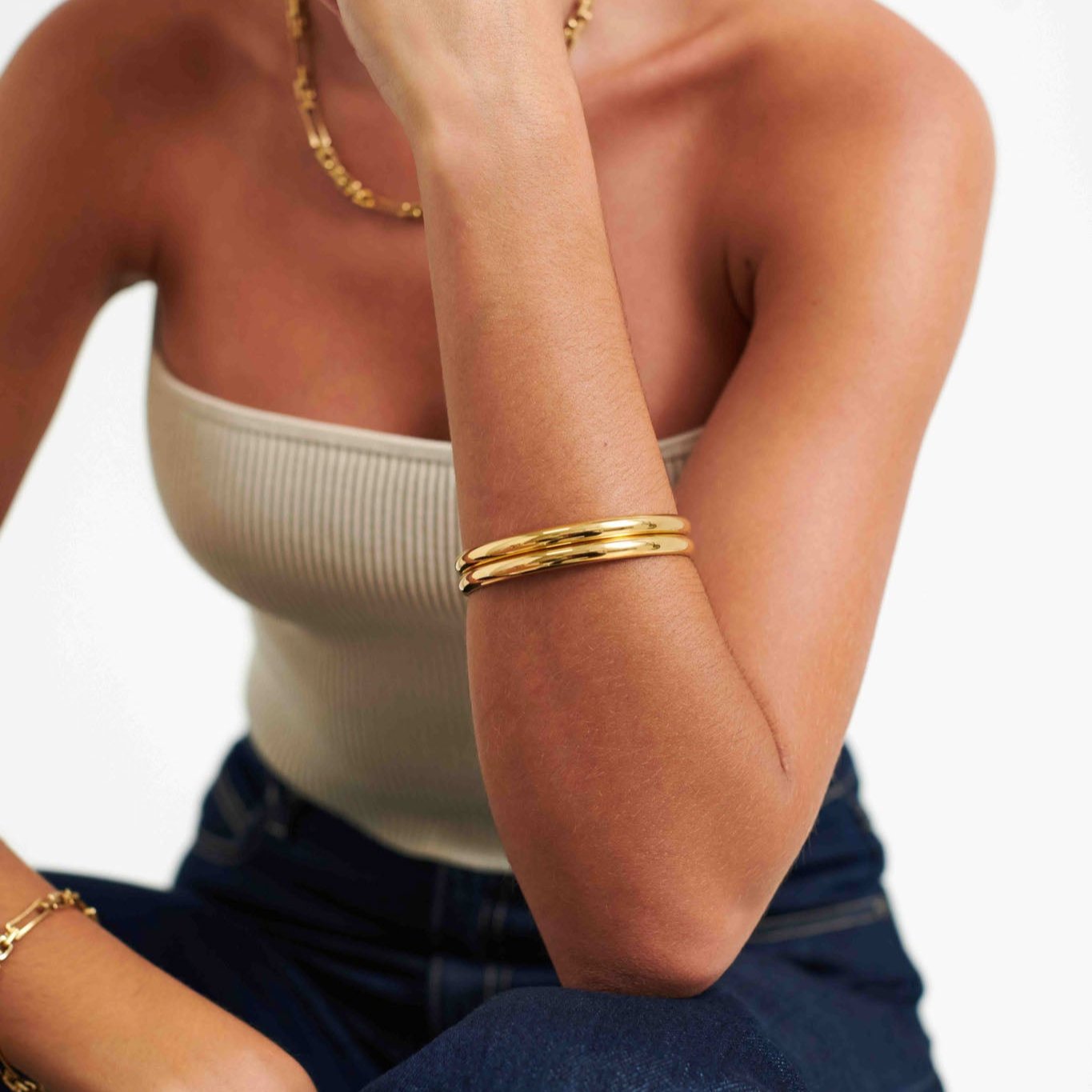 Our Classic Chunky Gold Bangle is the perfect statement piece. Featuring the same timeless design as our Classic Gold Bangle, this chunky version adds a bold touch to any outfit.