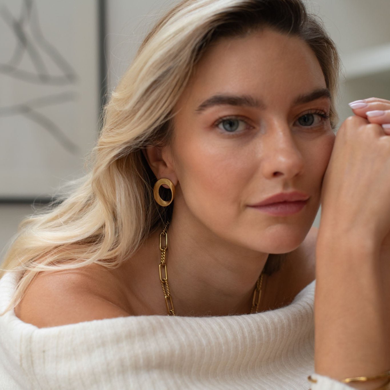 All our jewellery is made with a tarnish-free finish, meaning it stays shiny, golden, and beautiful. No matter what your day looks like.