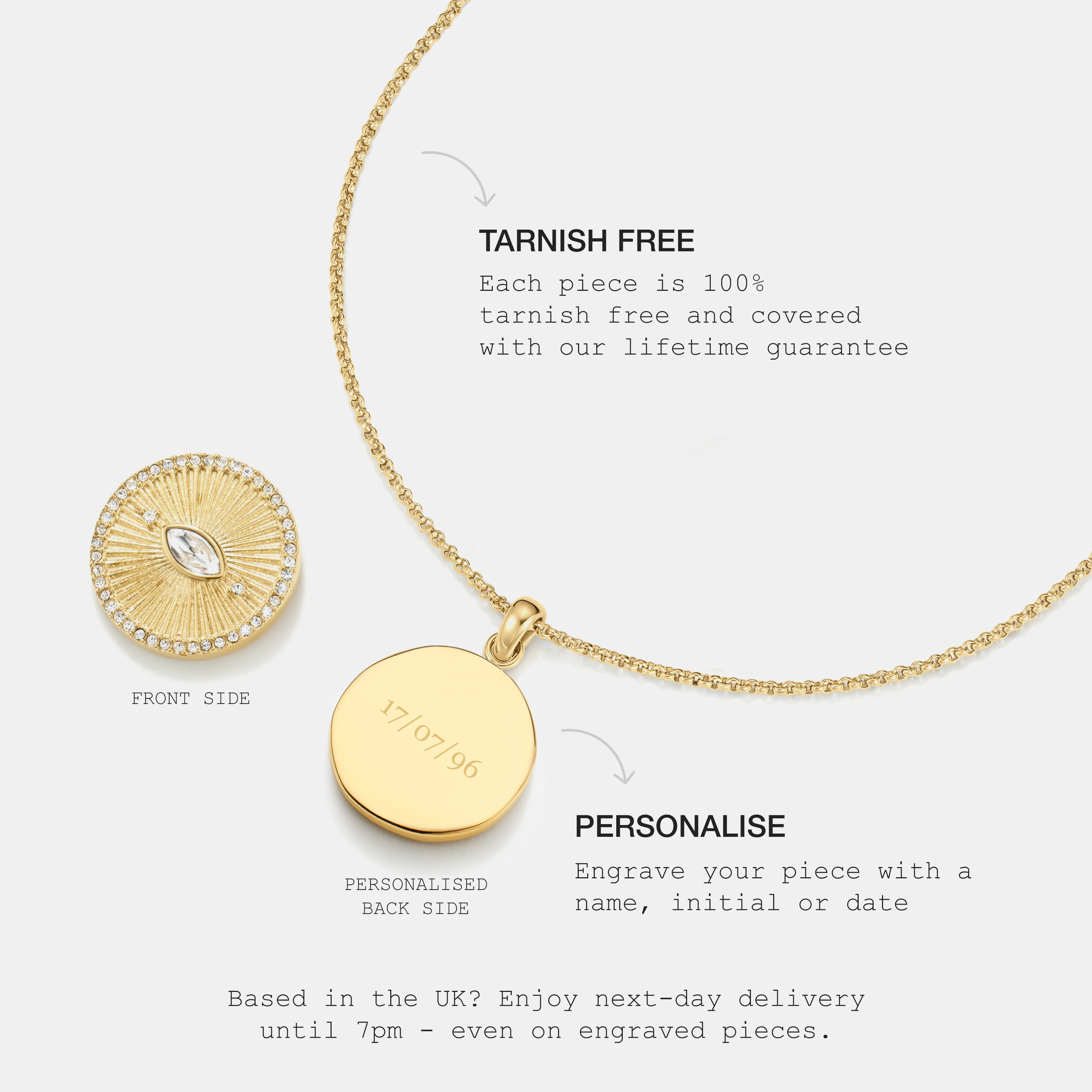 LIFETIME GUARANTEED Every piece comes with a lifetime guarantee against tarnishing.