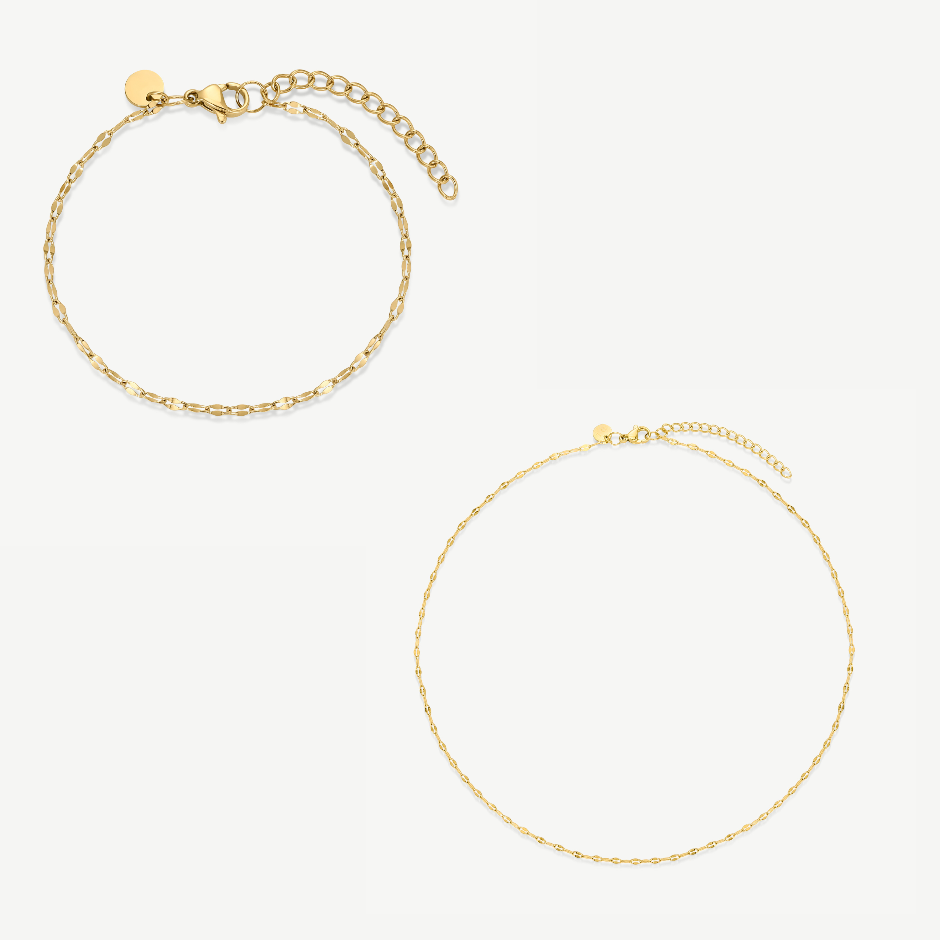 Our bestselling Dainty Necklace paired with its matching Bracelet — a delicate duo with a unique chain design that effortlessly elevates any look. Style them together or layer individually with your favourite pendants. The kind of gift that says everything without trying too hard.