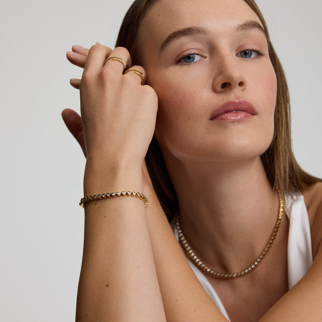Sleek bezel-set hearts create a refined tennis bracelet that shines with effortless elegance.