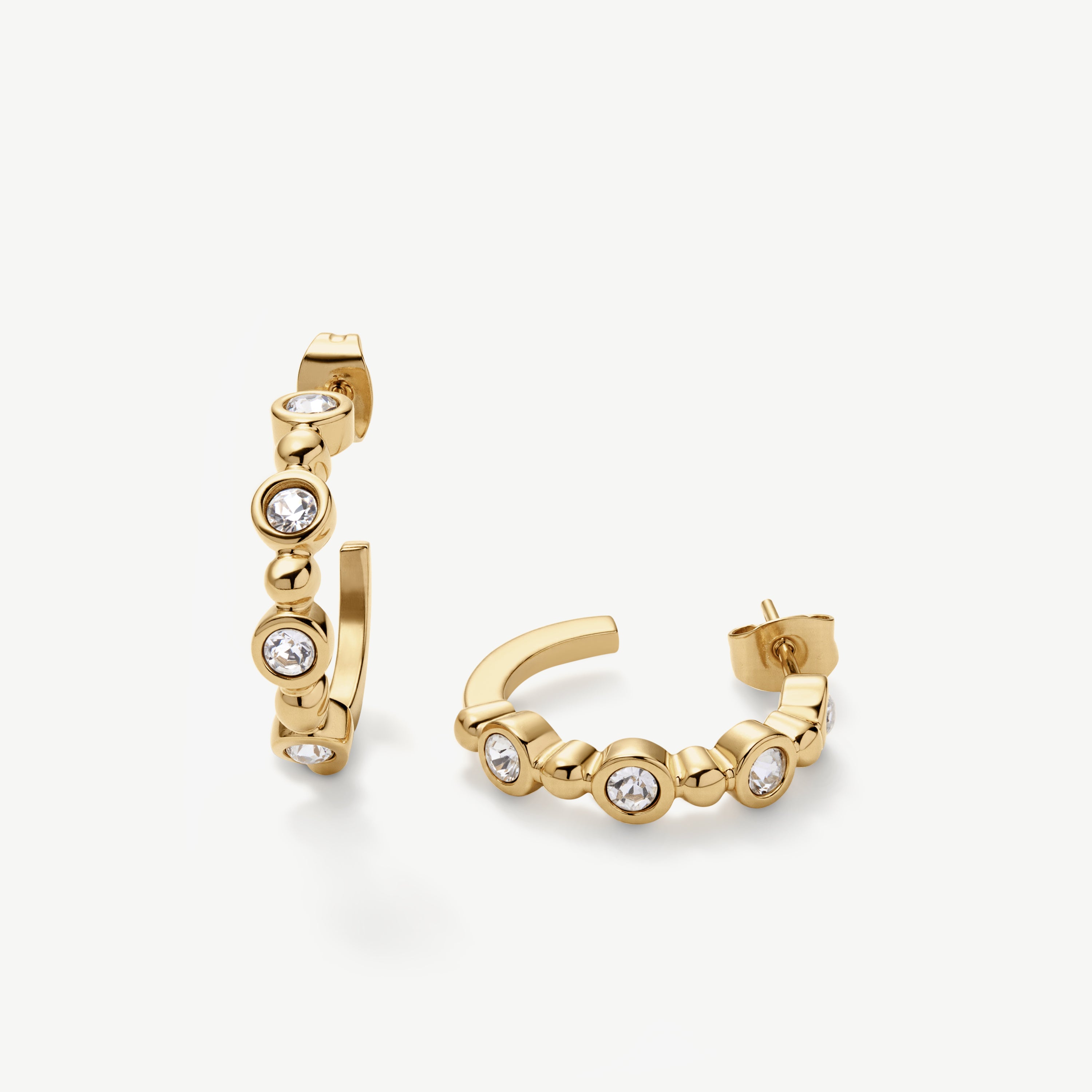 The Beaded Tennis Hoops combine high-shine stones with delicate beaded detailing - adding texture, depth, and just the right amount of drama. Lightweight, eye-catching, and made to move with you.