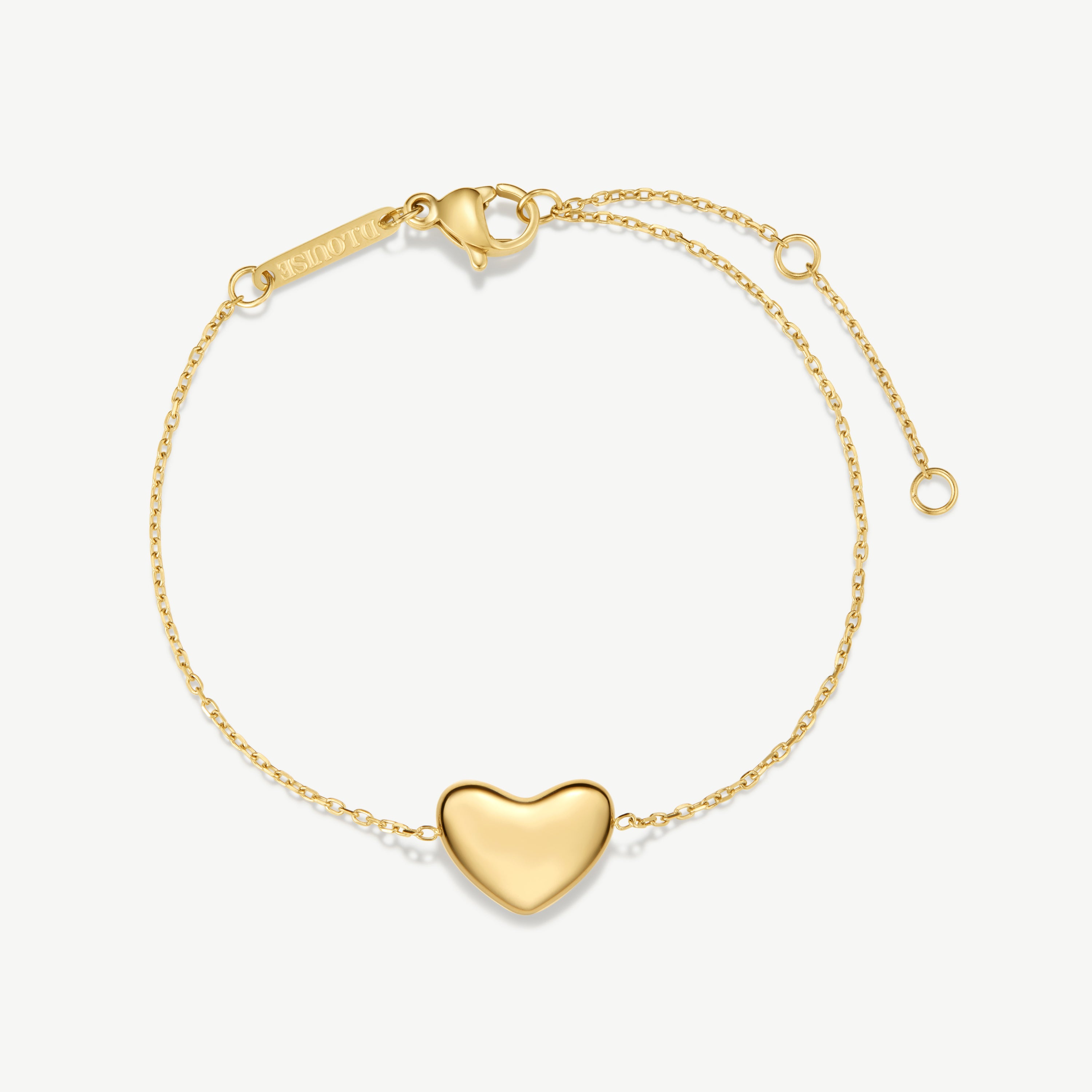 A dainty bracelet featuring a bubble shaped heart, perfect for layering or gifting with love.