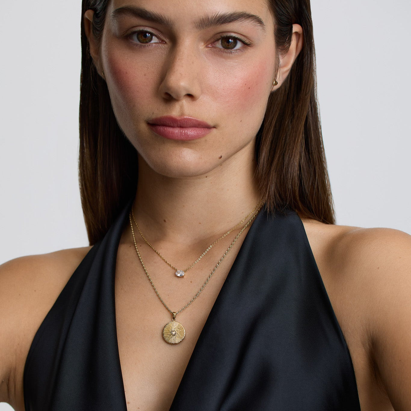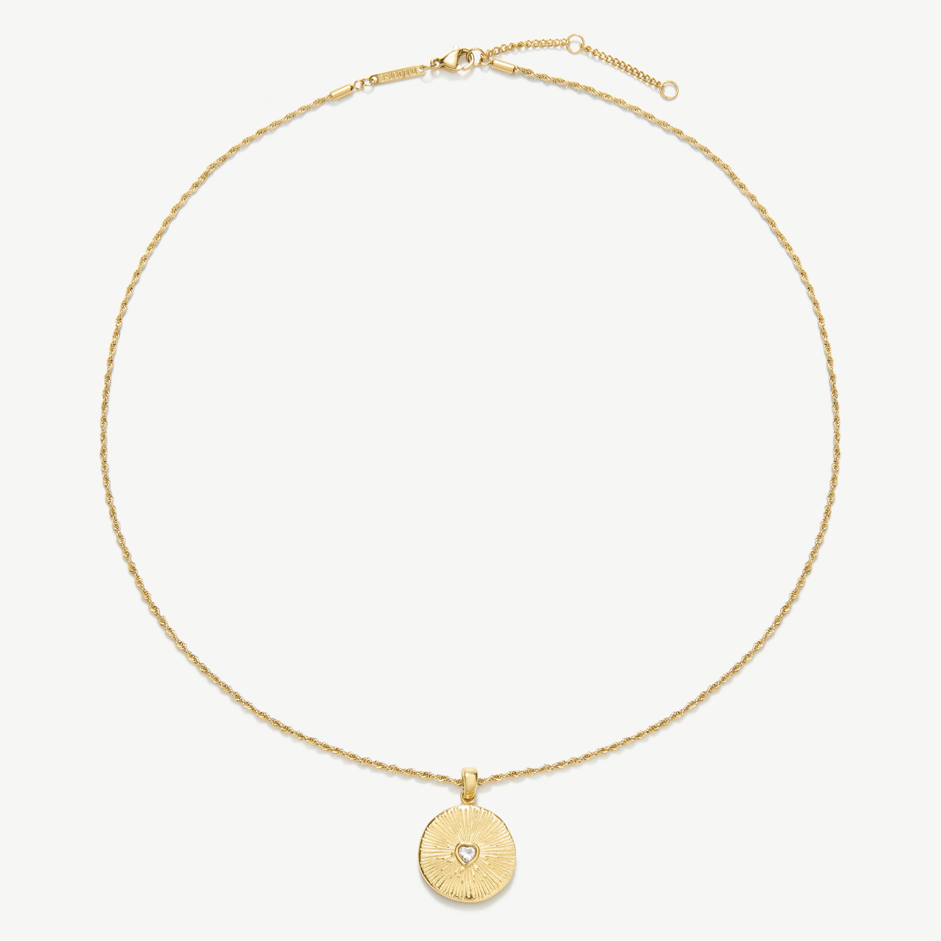 The Heart Talisman Necklace with Stones brings a touch of light to a timeless symbol of love. Featuring a raised heart framed by delicate stones, it’s designed to represent strength, connection, and the people who guide you through life.