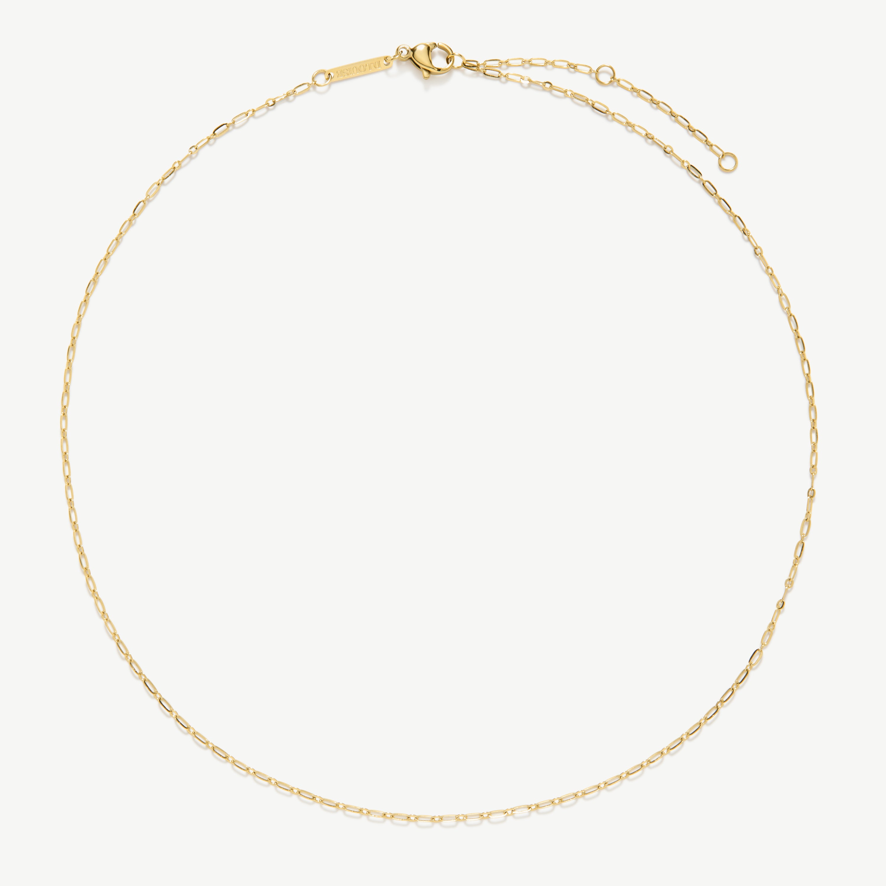 The Fine Paperclip Chain brings a contemporary twist to a classic silhouette - light enough for every day, yet bold enough to stand alone.