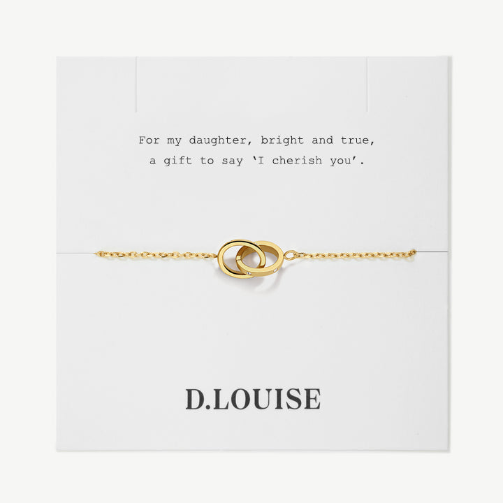 Two interlinked circles on a delicate chain - a timeless symbol of unbreakable bonds.
