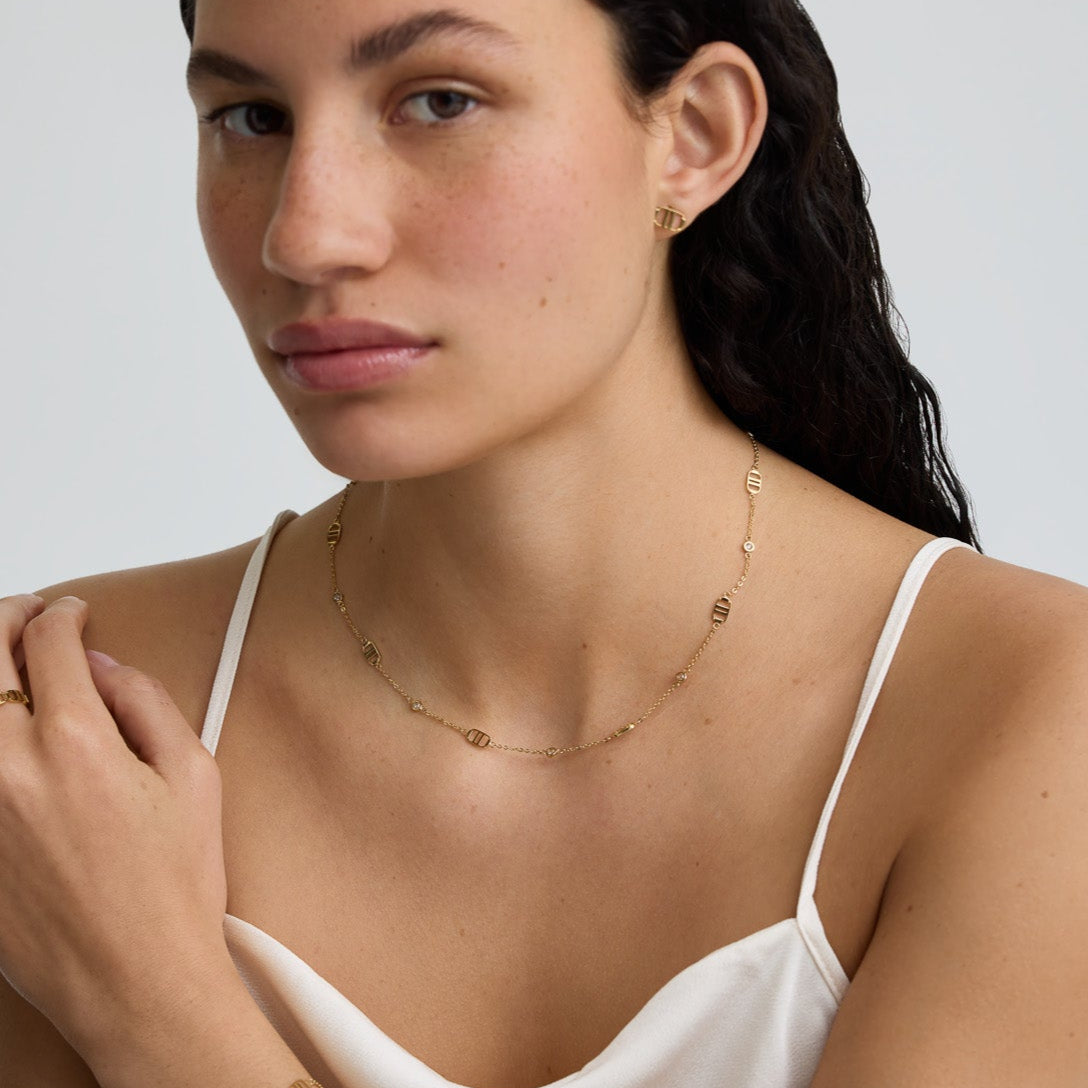 Delicate and effortless, this necklace elevates any look, whether worn solo or layered with our other Signature bracelets. Featuring our monogram and D.LOUISE diamonds, it’s a quiet statement of modern elegance.