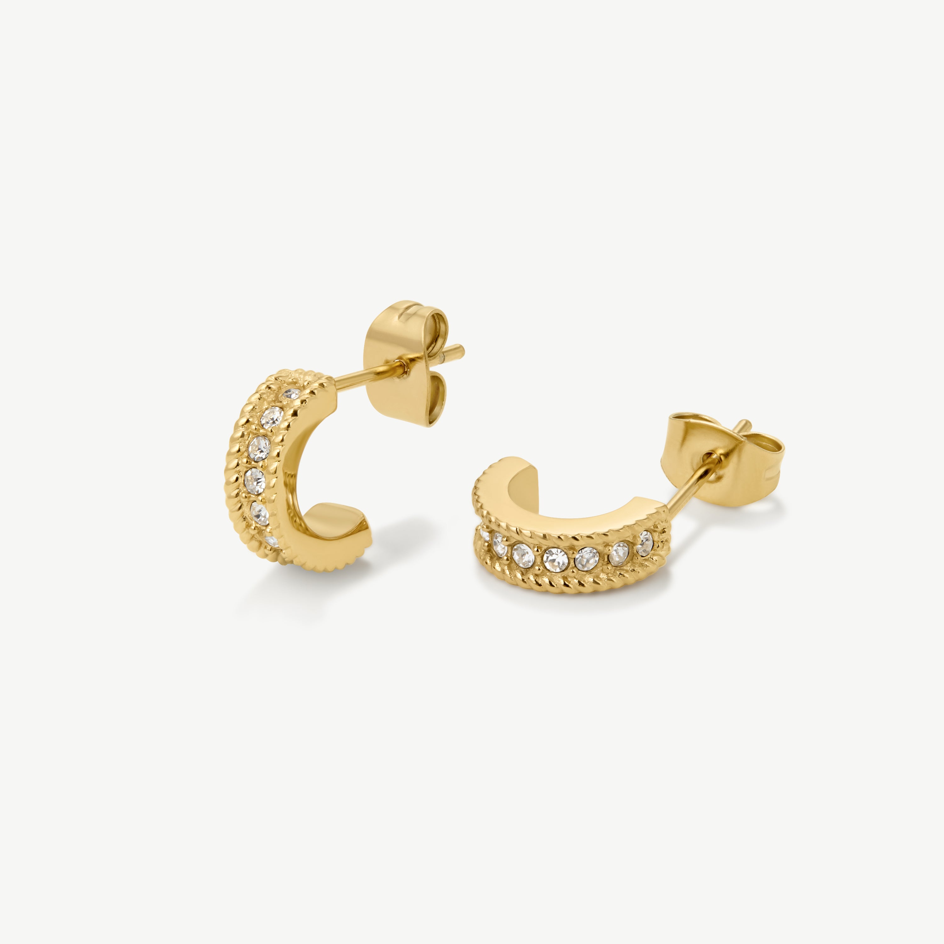 These earrings perfectly combine everyday comfort with a touch of sparkle. Featuring pavé embellishments and textured details, these huggies are the ultimate day-to-night style.