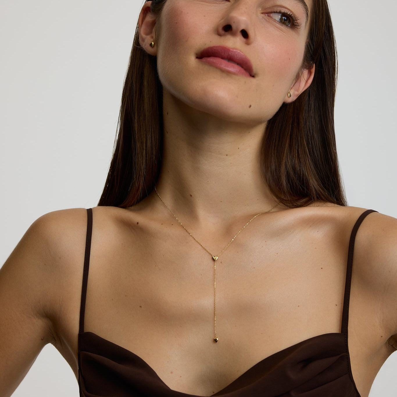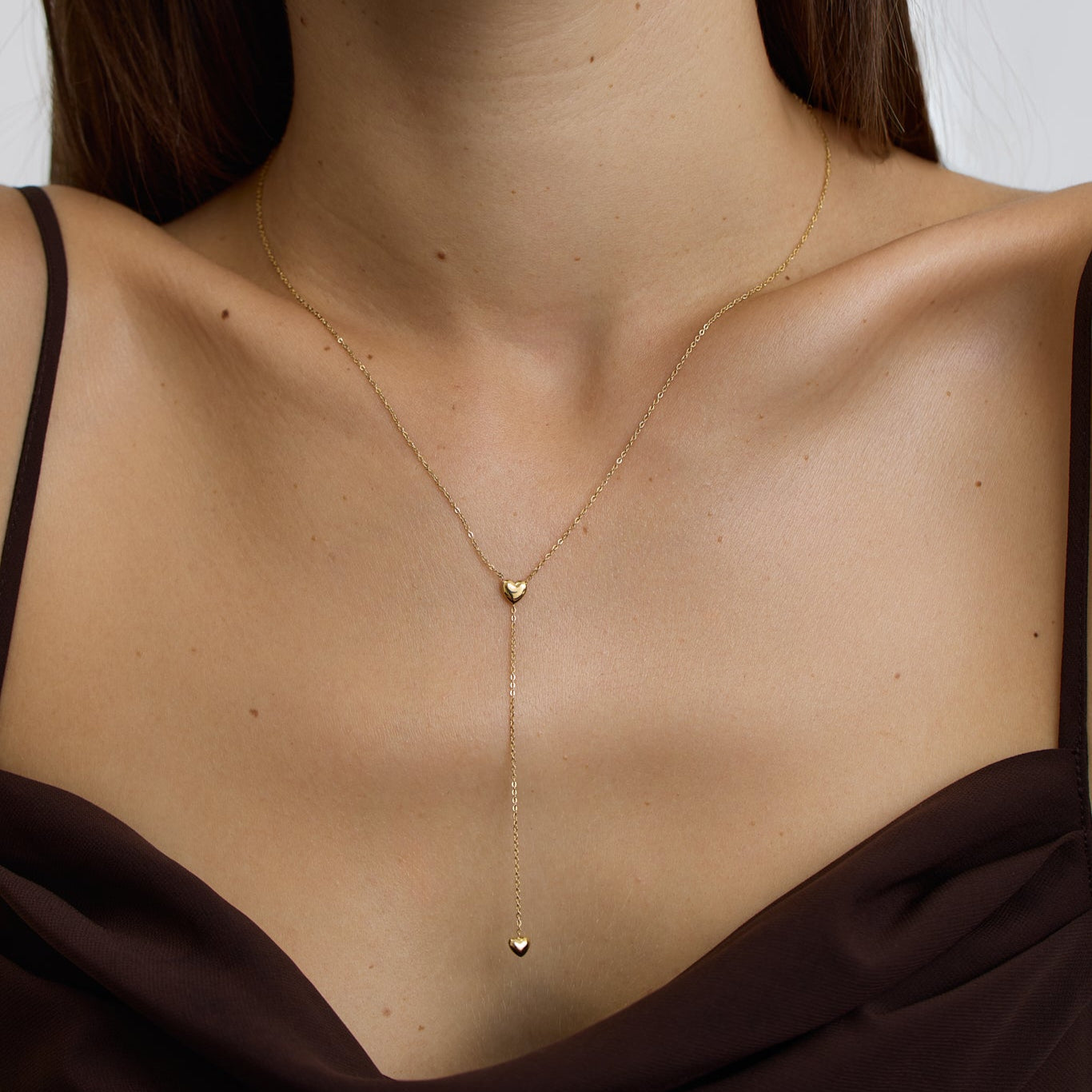 Details: A fine chain finished with a delicate heart detail, designed in a modern lariat style. Minimal, versatile, and perfect for adding effortless elegance to any neckline.