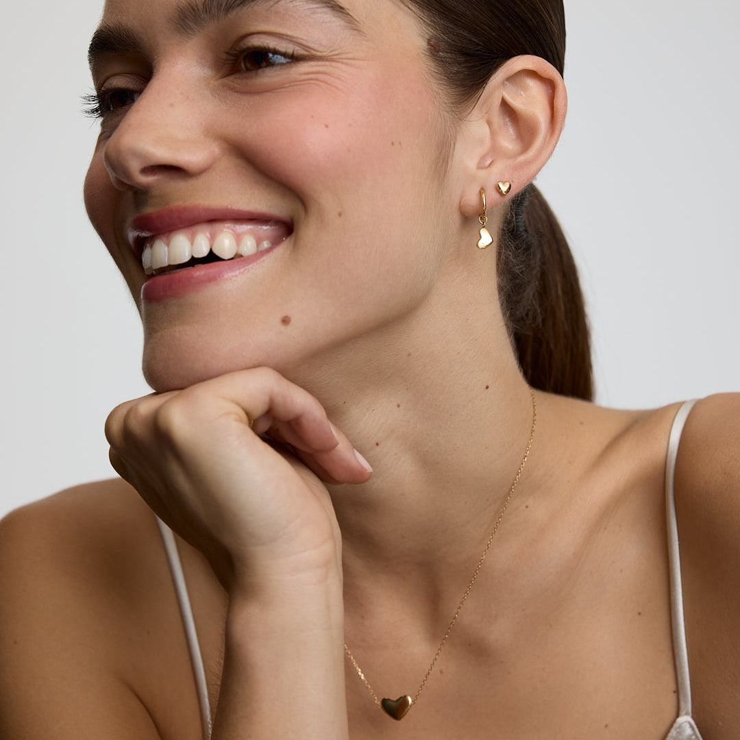 Dainty huggies featuring soft bubble-shaped hearts - the perfect everyday earrings with a playful, romantic touch.