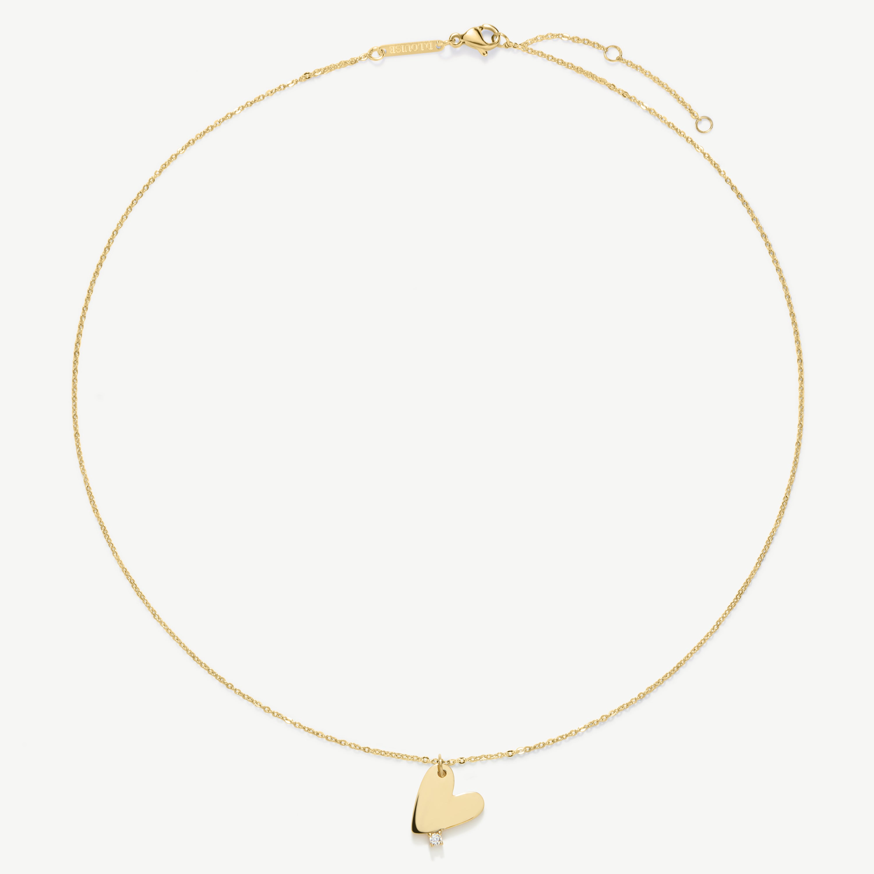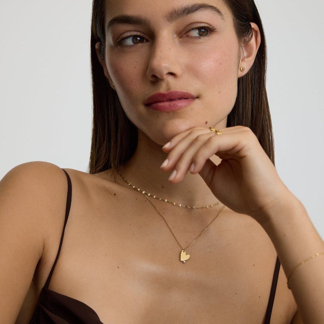 Details: A delicate heart pendant adorned with a subtle stone, set on a fine chain. Understated sparkle that’s perfect for everyday wear or layering.