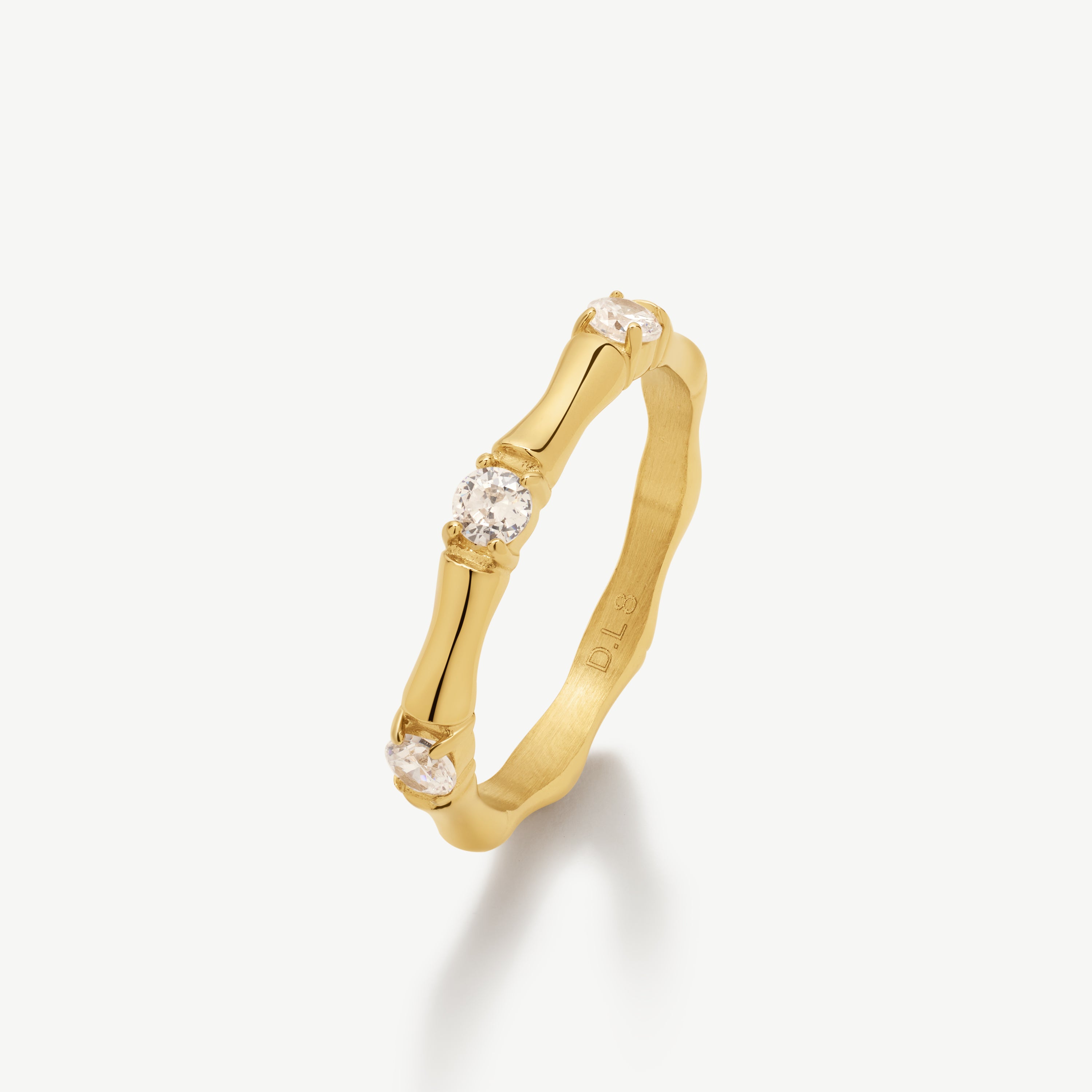 Details: Introduce a touch of glamour to your ring stack with our Bamboo Ring With Stones. This modern design is elevated by timeless cubic zirconia details, making it a versatile addition to your jewellery collection.