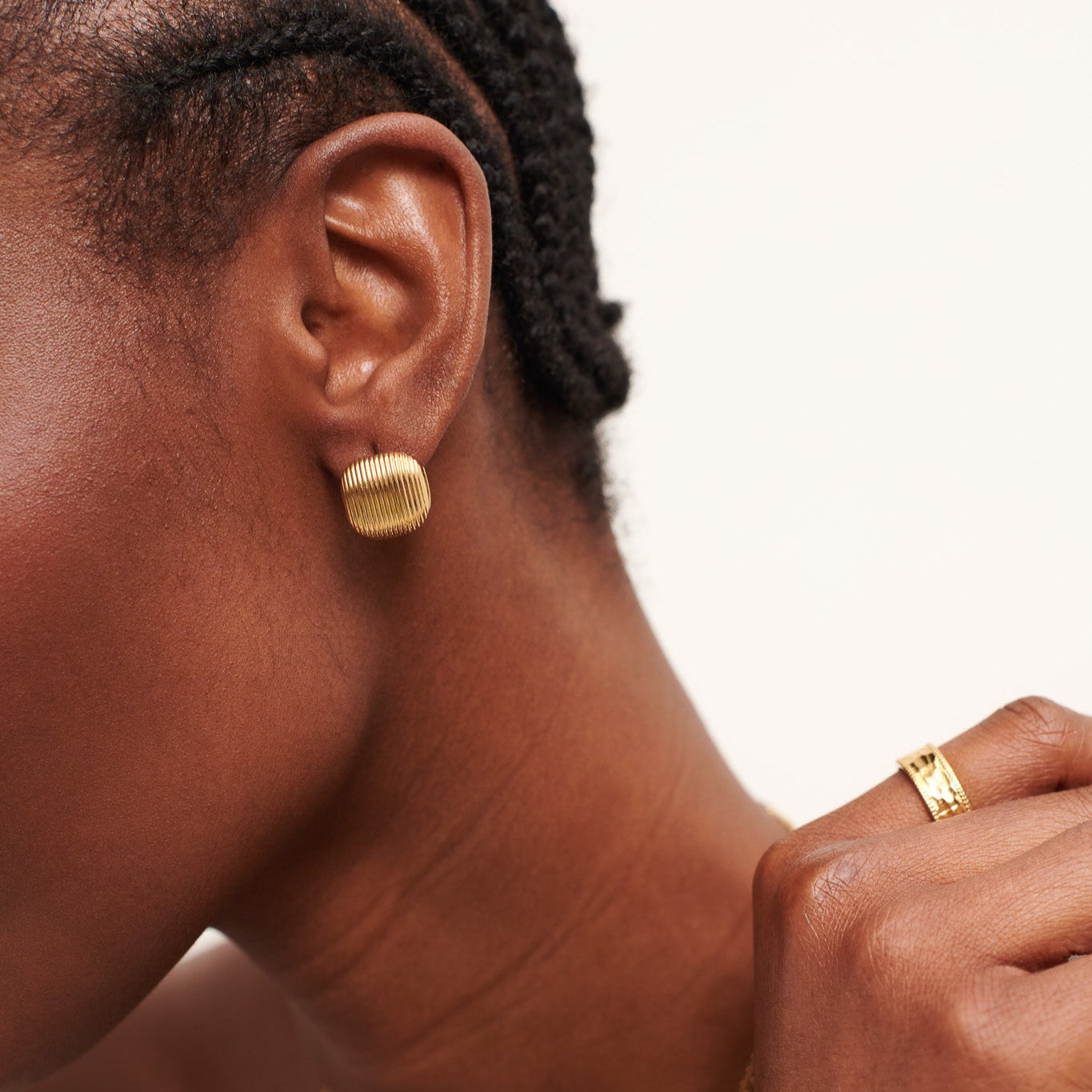 Combining modern ribbed detailing and vintage flair, these statement earrings add immediate impact to any look.