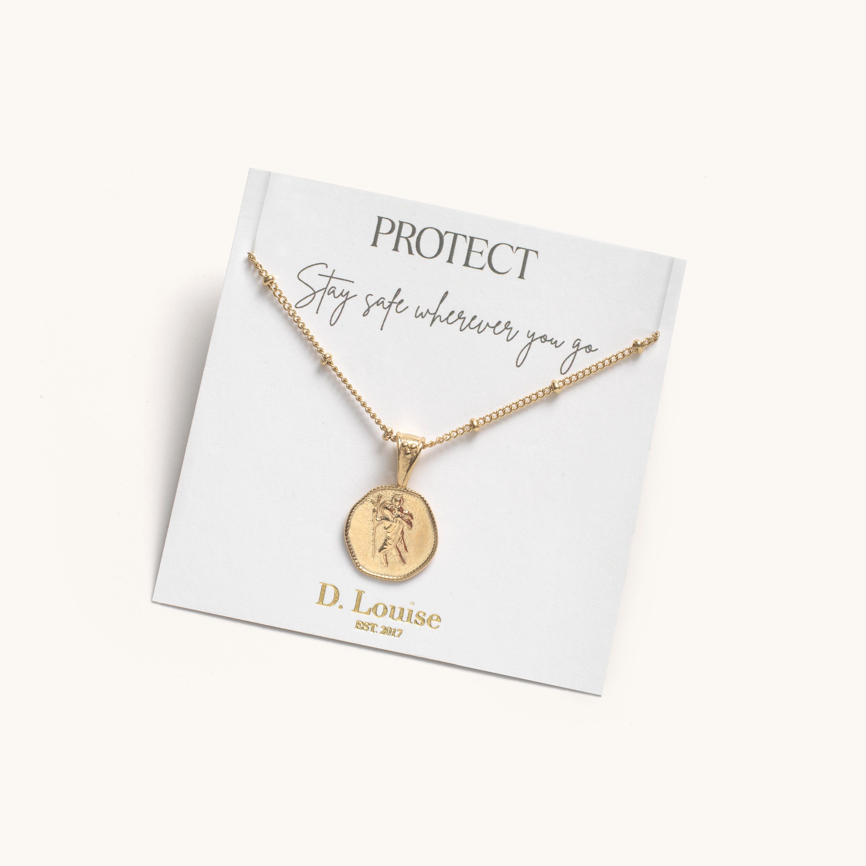 Elevate your style and offer protection on all your travels with the St. Christopher Necklace. This stunning emblem makes for a thoughtful gift for fellow travellers. Opt for the optional gift card to complete the perfect present.