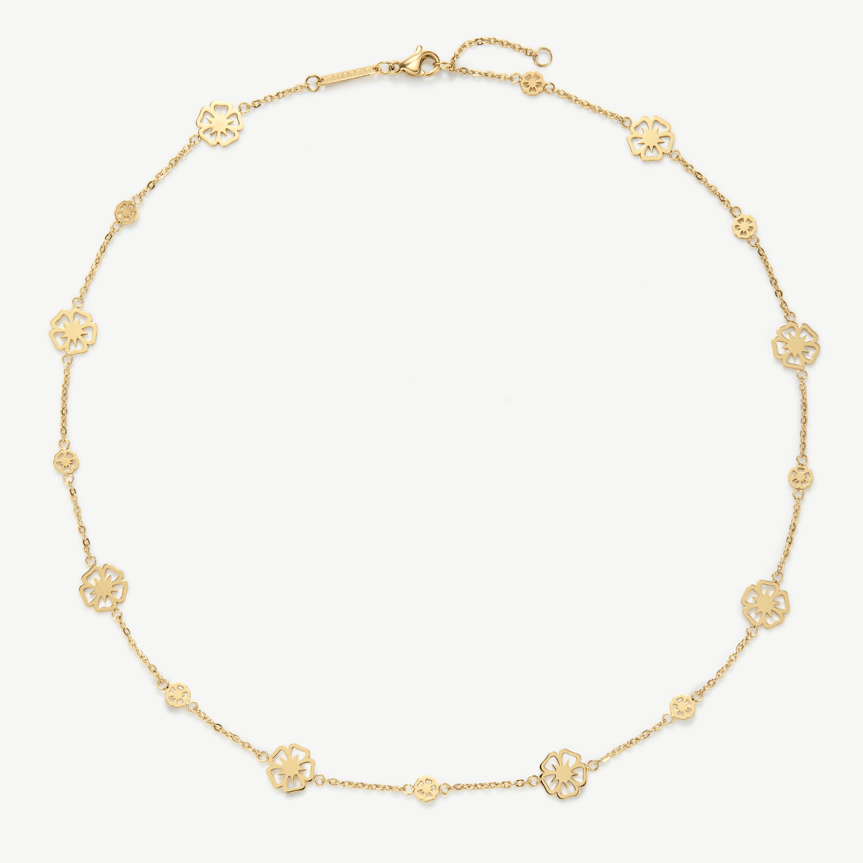 Details: A layering-friendly station chain necklace. Necklace chain with evenly spaced polished roses.