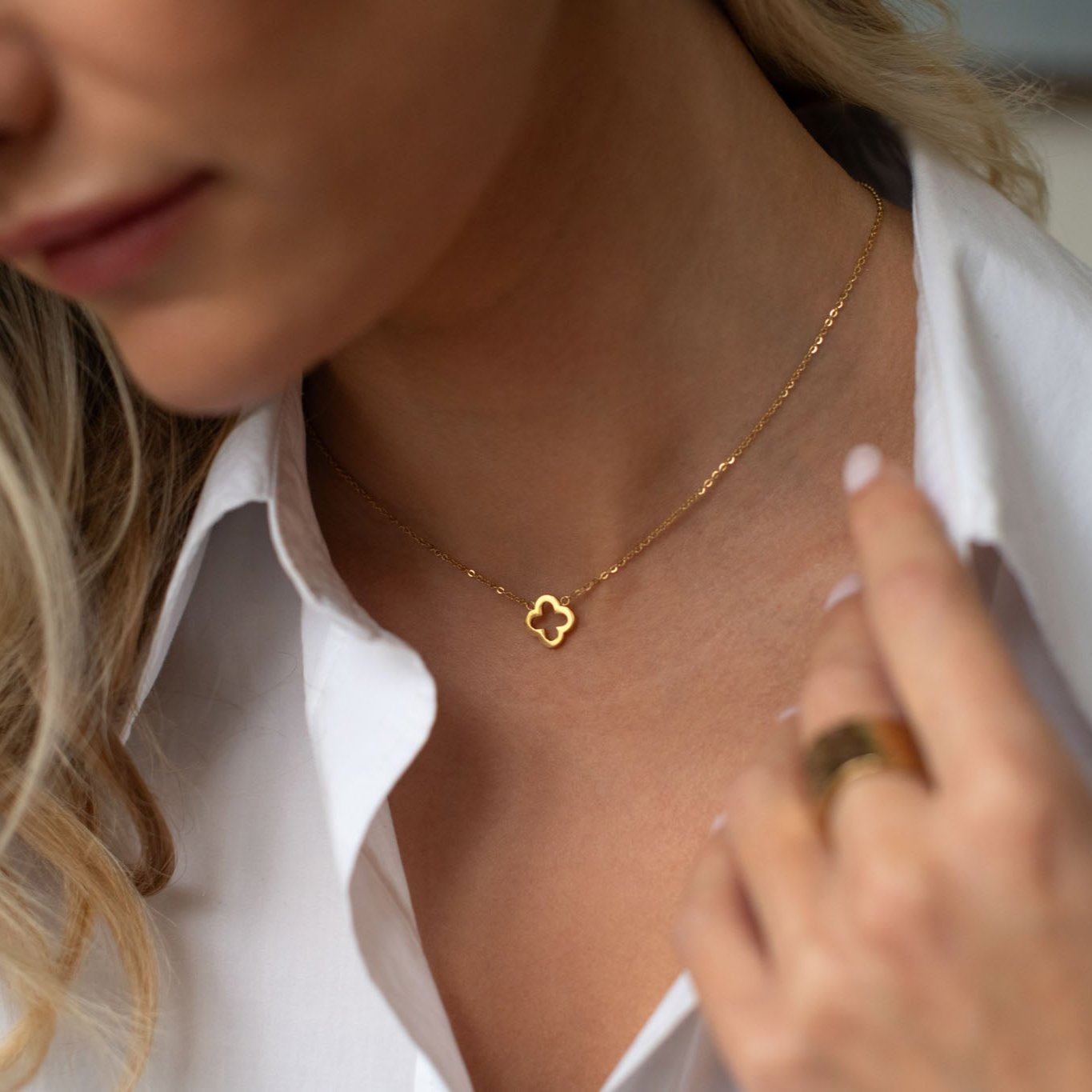 This Classic Clover Pendant Necklace features a delicate outline design for a timeless and elegant look. Carefully crafted, this necklace is perfect for everyday wear.