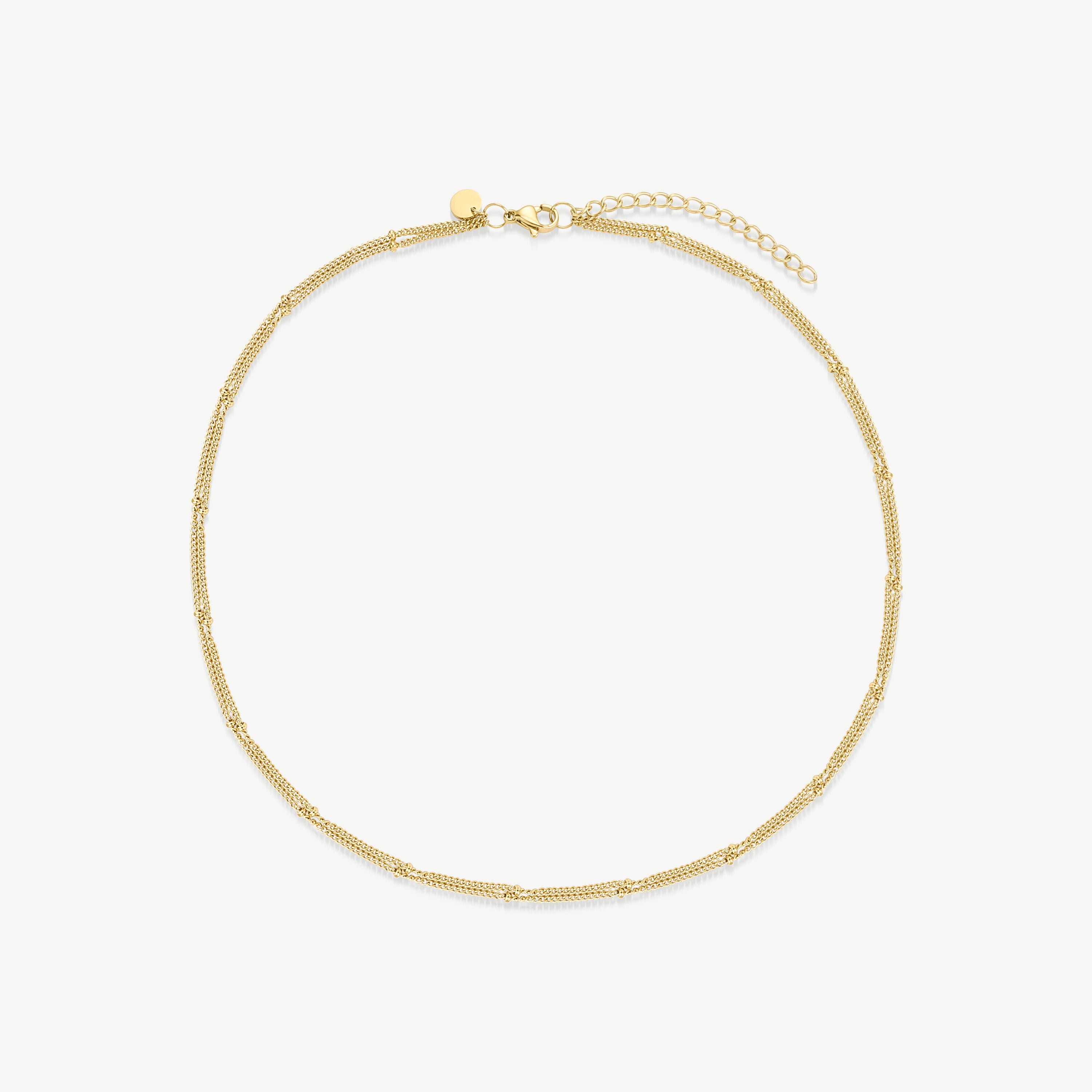 Our simple beaded necklace is a piece to cherish. Featuring layers of beads, this necklace will compliment any outfit and draw the eye. Its dainty size allows it to be layered with other necklaces, or worn alone for a more classic look.