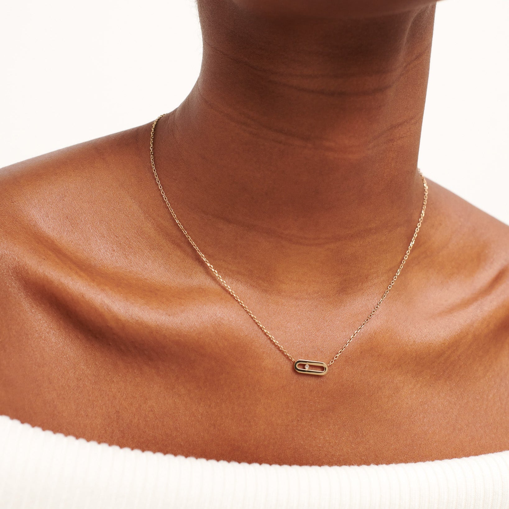 Experience everyday elegance with our Ellipse Pendant Necklace. This beautifully delicate piece features an ellipse design, accentuated by a subtle cubic zirconia stone.