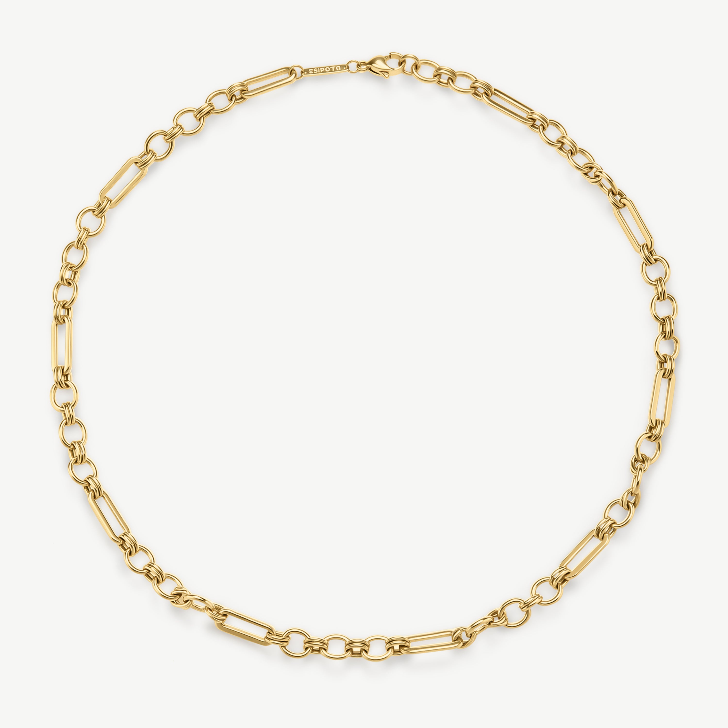 The Eternal Link Necklace features smooth, rounded links that flow seamlessly together, creating a fluid, light-catching finish.