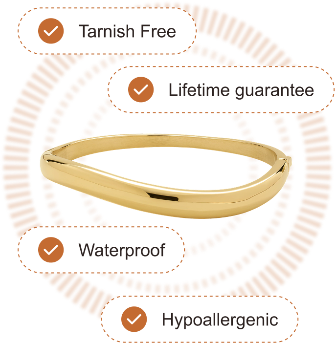 Our jewellery is sweatproof, waterproof, heat resistant, and 10x stronger than gold-plated. It’s hypoallergenic, scratch-resistant, and won’t tarnish - made to wear every day, no extra care needed.