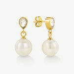 Elegant pearl drop earrings accented with a pear-shaped stone, these earrings add effortless sophistication for any occasion.